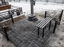 Изготовлены элементы ограждения Установлена лавочка Создана голгофа из натуральных камней Уложена гранитная брусчатка