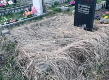 Уборка засохшей травы на могиле